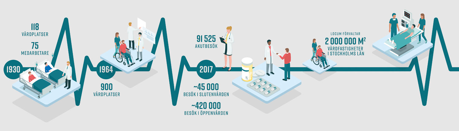 Sjukvårdens omdaningsperioder hänger även samman med konkreta förändringar i samhället, som befolkningstillväxt, nya patient- och vårdkrav och förändrade arbetssätt. Fram till idag har Danderyds sjukhus genomgått en fantastisk utveckling och de 3 950 medarbetarna tar emot närmare en halv miljon besök per år.